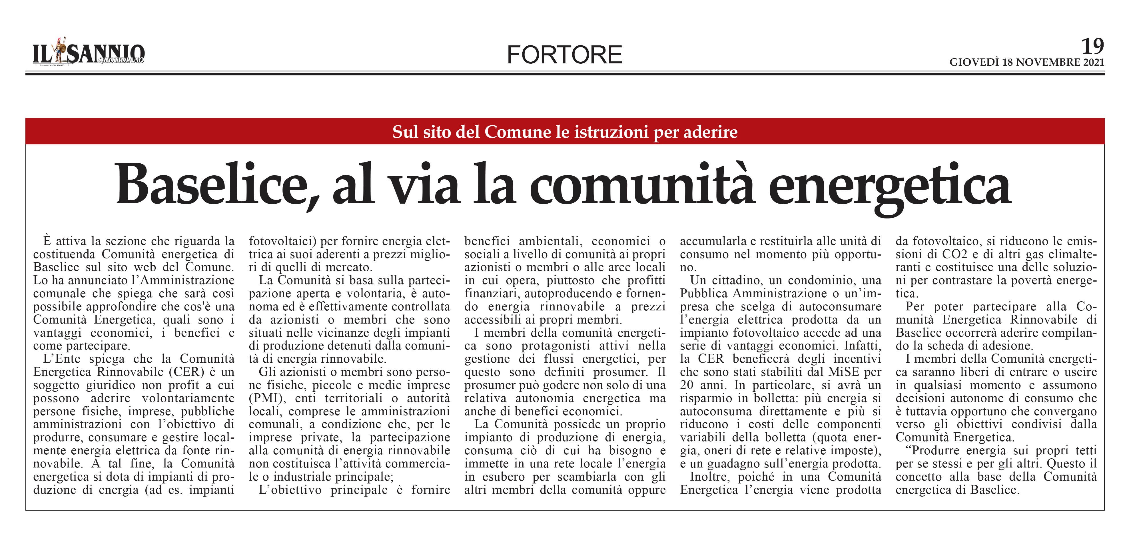 energetica di Baselice sul sito web del Comune.